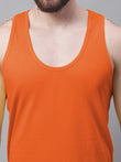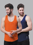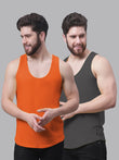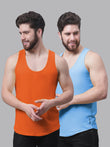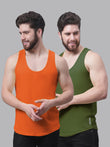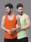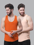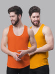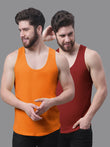 Men's Pack Of 2 Orange & Maroon Solid Pure Cotton Innerwear Gym Vest, has a round-neck, sleeveless