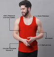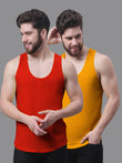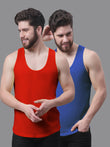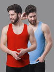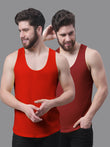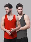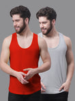 Men's Pack Of 2 Red & Grey Solid Pure Cotton Innerwear Gym Vest, has a round neck, sleeveless