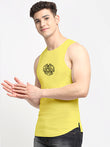Men's Printed Round Neck Sports Gym Vest, has a round neck, sleeveless