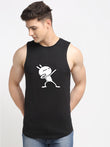 Men's Three Star Round Neck Sports Gym Vest, has a round neck, sleeveless