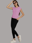 Women Slit Sleeves Smile Printed Pure Cotton T-Shirt, has a round neck, sleeveless