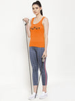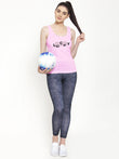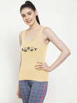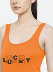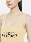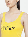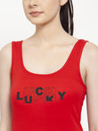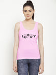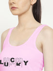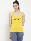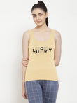 Women Lucky Pure cotton Printed Top Vest, has a round neck, sleeveless