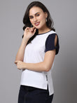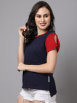 Women Multicolor Slit Sleeves Pure Cotton T-Shirt