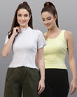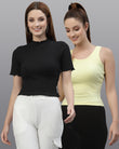 Women Pack Of 2 Pure Cotton Comfy Top has a round neck, sleeveless