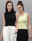 Women Pack Of 2 Pure Cotton Regular Fit Top has a round neck, sleeveless