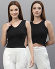 Women Pack Of 2 Pure Cotton Regular Fit Top, has a round neck, sleeveless