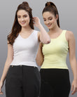 Women Pack Of 2 Pure Cotton Regular Fit Top has a round neck, sleeveless