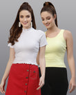 Women Pack Of 2 Pure Cotton Solid Top, has a round neck, sleeveless