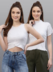 Women Pack Of 2 Pure Cotton Top has a round neck, sleeveless