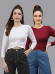 Women Pack Of 2 Ribbed Pure Cotton Crop Top