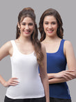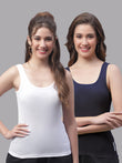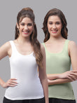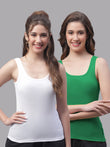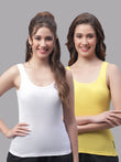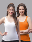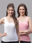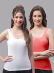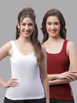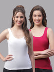 Women Pack Of 2 White & Red Regular Tank Top, has a round neck, sleeveless
