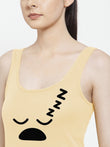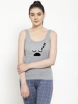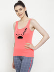 Women Sleey Mode Pure cotton Printed Top Vest, has a round-neck, sleeveless