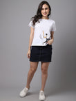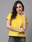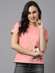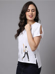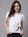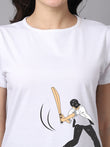 Women Slit Sleeves Cricket Printed Pure Cotton T-Shirt