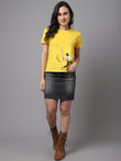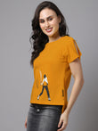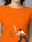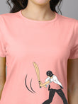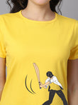 Women Slit Sleeves Cricket Printed Pure Cotton T-Shirt ,has a round neck, sleeveless