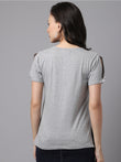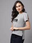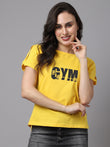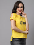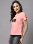 Women Slit Sleeves Gym Printed Pure Cotton T-Shirt