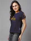 Women Slit Sleeves Mahadev Printed Pure Cotton T-Shirt