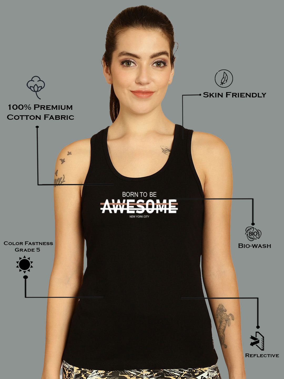 Women Awesome Printed Cotton Slim Fit Tank Top