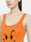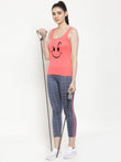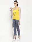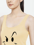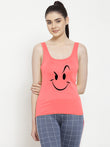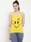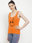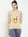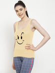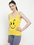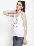Women Smiley Pure cotton Printed Top Vest, has a round neck, sleeveless