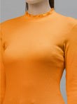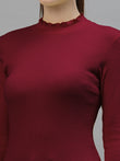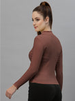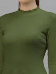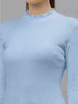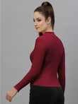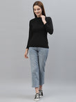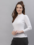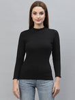 Women Solid Fitted High Neck Full Sleeve Top