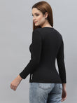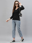 Women's Low Cut V-Neck Ruffled Long Sleeve Top ,has a round neck, sleeveless