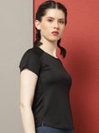 Women's Round Neck Short Sleeve Sports T-Shirt has a round neck, sleeveless